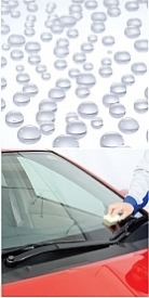 汚れの密着を防ぐ被膜で、雨が洗車に。