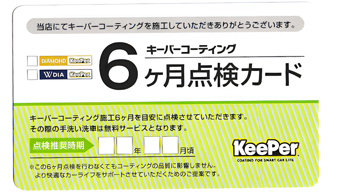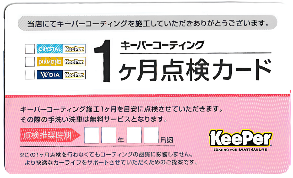 クリスタル・ダイヤ・Wダイヤのコーティングを施工された方には、施工後1か月目または6ヶ月目に無料で点検を実施いたします。